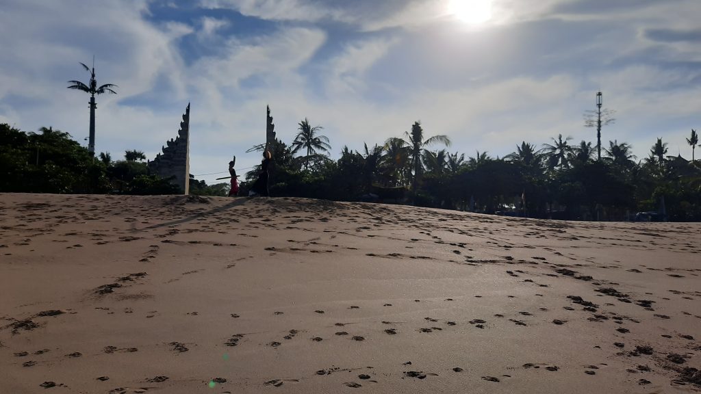 The Famous Kuta Beach is a place you can visit. Watching sun down is healing. Perfect time to visit is right before sun down. People usually come at four or five PM. But we must follow health protocol. Wearing mask and taking distance from others are required. Local officer oversee beach visitors at some spots.